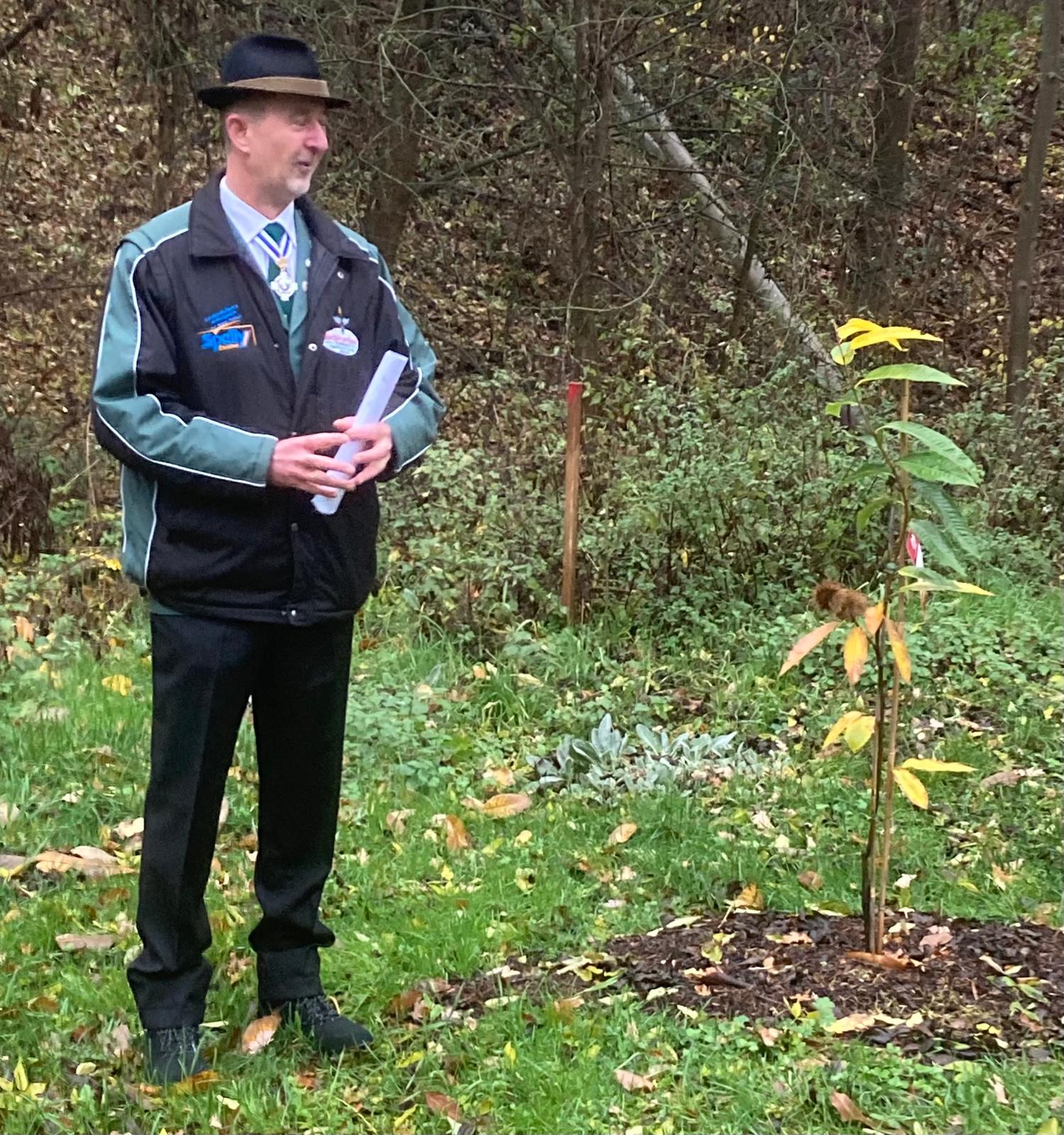 Traditionell setzte der Große König Ingo Offelmann ein sichtbares Zeichen: Vor dem Ochsenessen pflanzte er seinen Königsbaum, eine Esskastanie, auf dem Tontaubengelände.
