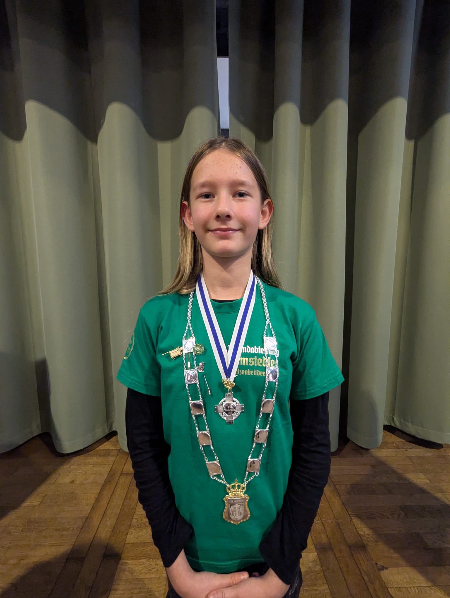 Eine besondere Ehrung konnte in diesem Jahr ebenfalls nachgeholt werden: Die vom Bürgermeister der Stadt Helmstedt gespendete Königskette für den Kinderkönig fand nun endlich ihren Weg zur diesjährigen Kinderkönigin Juline Barmwater, die sie feierlich überreicht bekam.